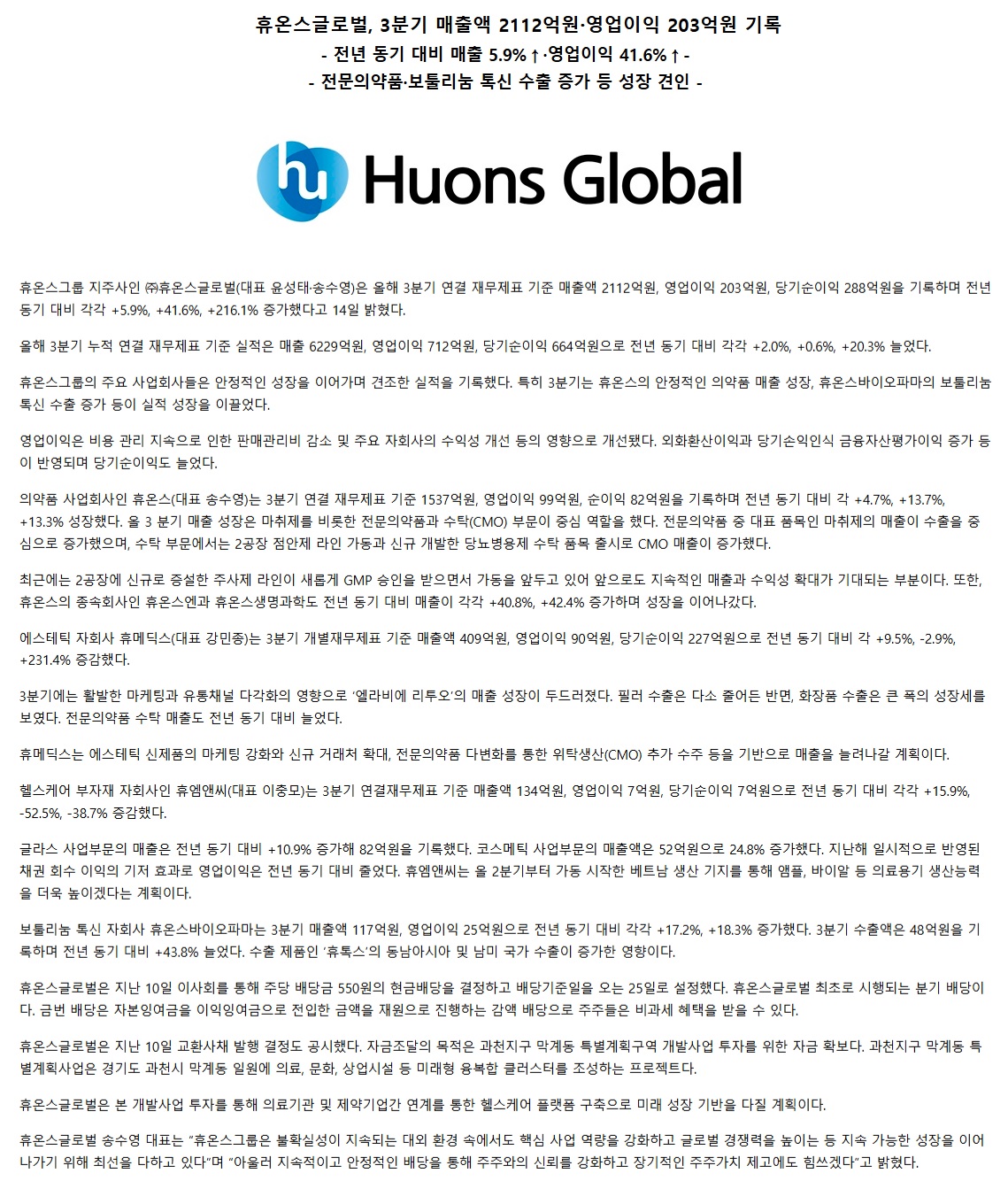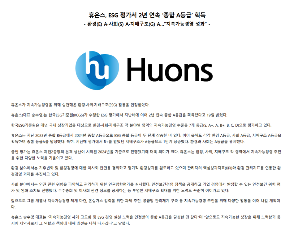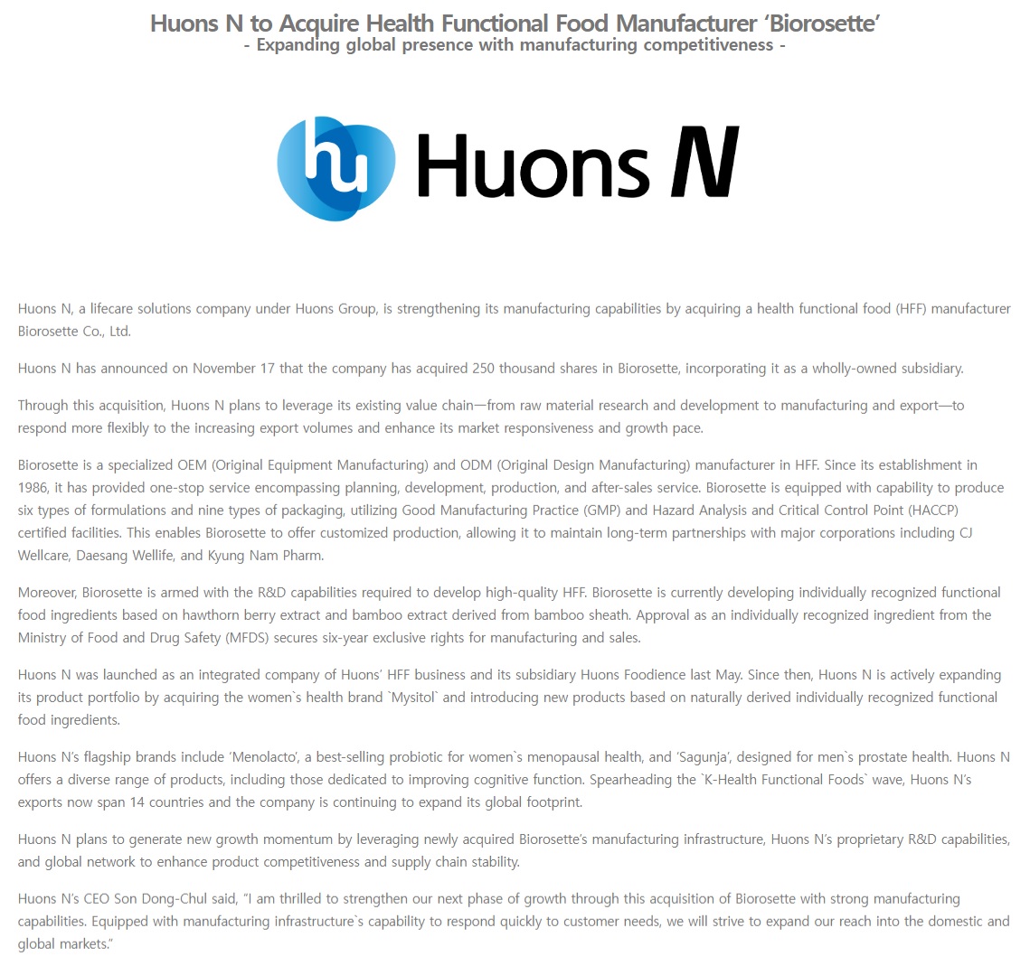휴온스엔, 건기식 제조사 ‘바이오로제트’ 전격 인수 - 글로벌 확장 가속… ”제조 경쟁력 높인다”&nb..