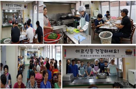 | 휴온스 그룹 임직원들이 지난 19일(토) ‘효사랑 따뜻한 밥상’에 방문하여 어르신을 위한 무료 급식 봉사 활동을 진행했다.